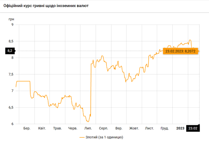 Национальный банк Украины обновил курсы валют на 23 февраля 2023 года.