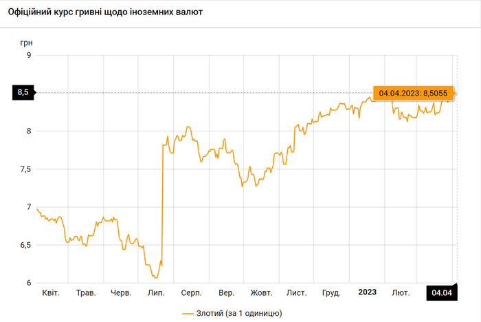 - 100 польских злотых – 850 грн. (8,50 за злотый, 0 коп.)