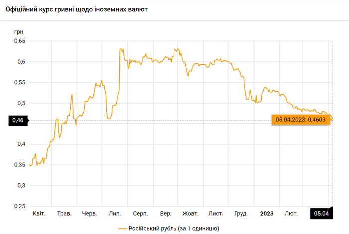 На черном рынке на 5.04.2023 установлен следующий курс: