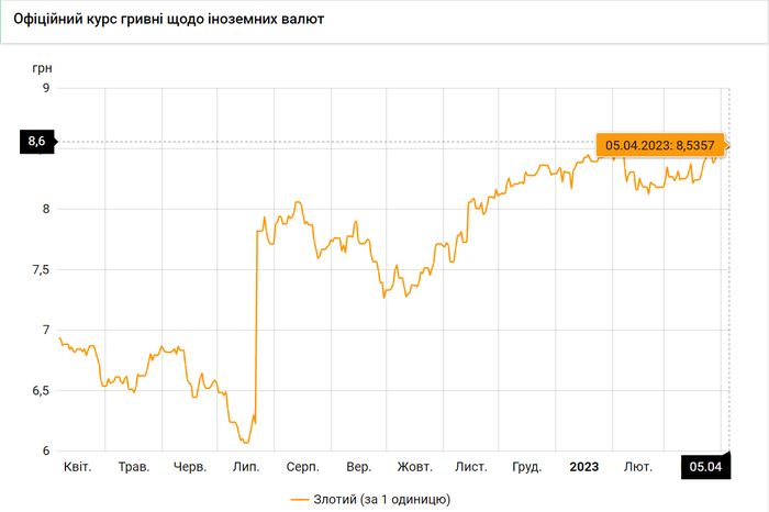 Национальный банк Украины обновил курсы валют на 5 апреля 2023 года.