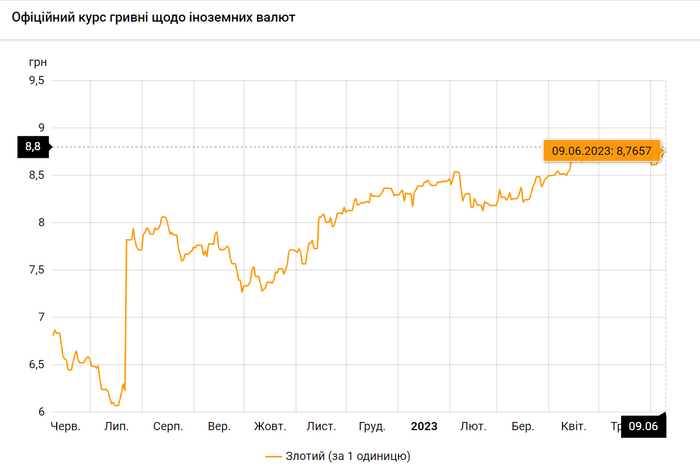 - 100 польских злотых – 876 грн. (8,76 за злотый, 0 коп.)