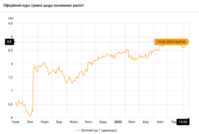 - 100 польских злотых – 882 грн. (8,82 за злотый, -4 коп.)