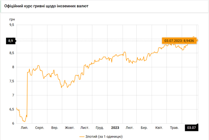 - 100 польских злотых – 894 грн. (8,94 за злотый, -4 коп.)