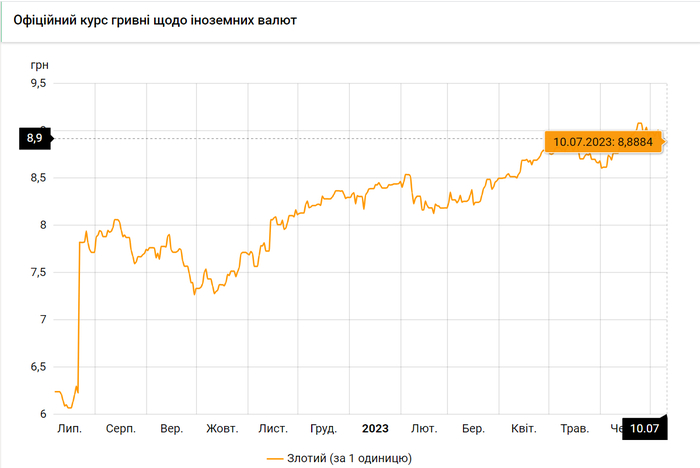 Национальный банк Украины обновил курсы валют на 10 июля 2023 года.