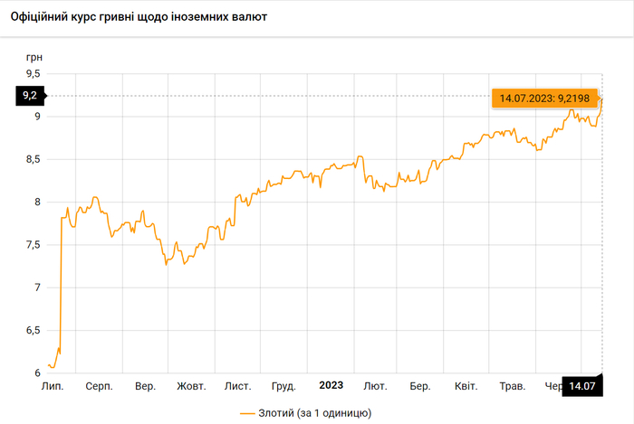 - 100 польских злотых – 921 грн. (9,21 за злотый, +16 коп.)