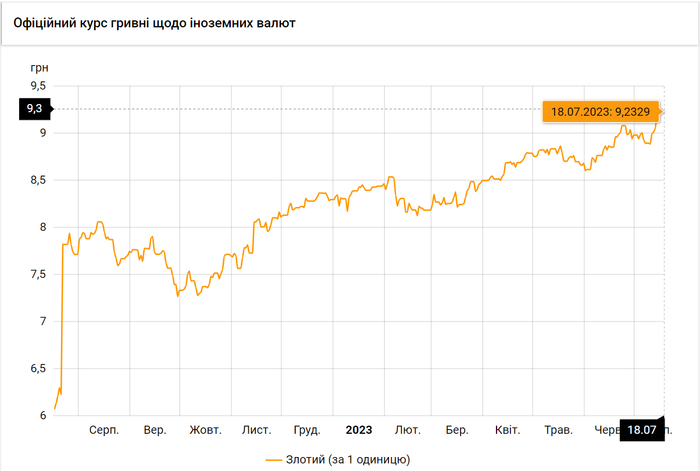 - 100 польских злотых – 923 грн. (9,23 за злотый, 0 коп.)