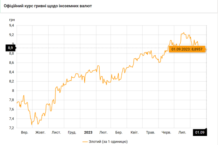 Национальный банк Украины обновил курсы валют на 1 сентября 2023 года.