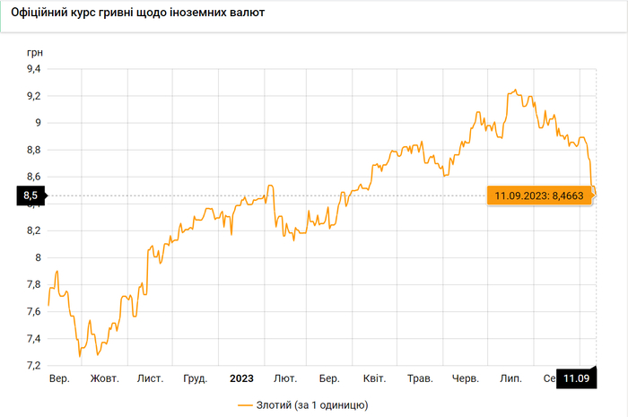Национальный банк Украины обновил курсы валют на 11 сентября 2023 года.