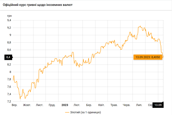 Национальный банк Украины обновил курсы валют на 13 сентября 2023 года.