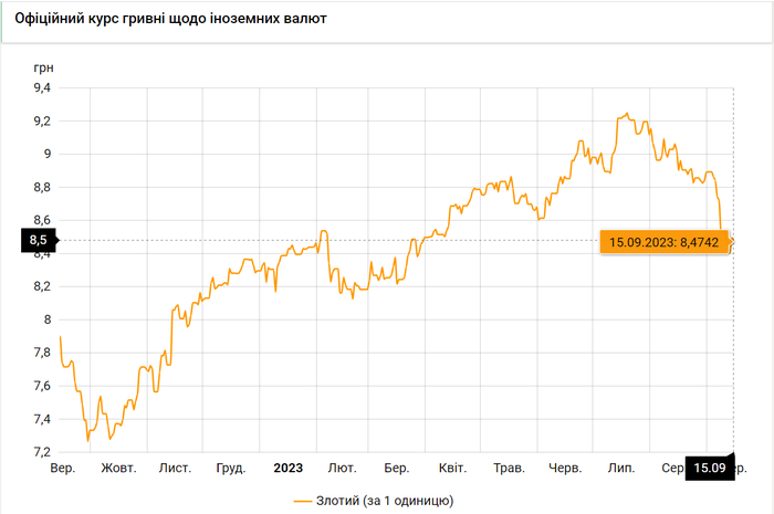 Национальный банк Украины обновил курсы валют на 15 сентября 2023 года.