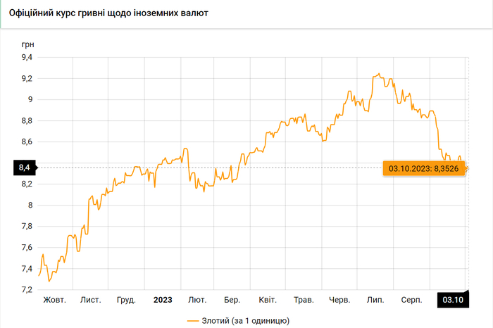 - 100 польских злотых – 835 грн. (8,35 за злотый, -3 коп.)