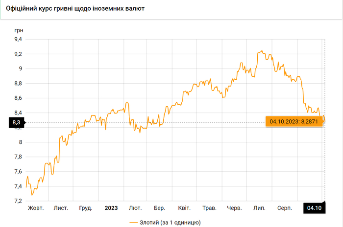 - 100 польских злотых – 828 грн. (8,28 за злотый, -7 коп.)