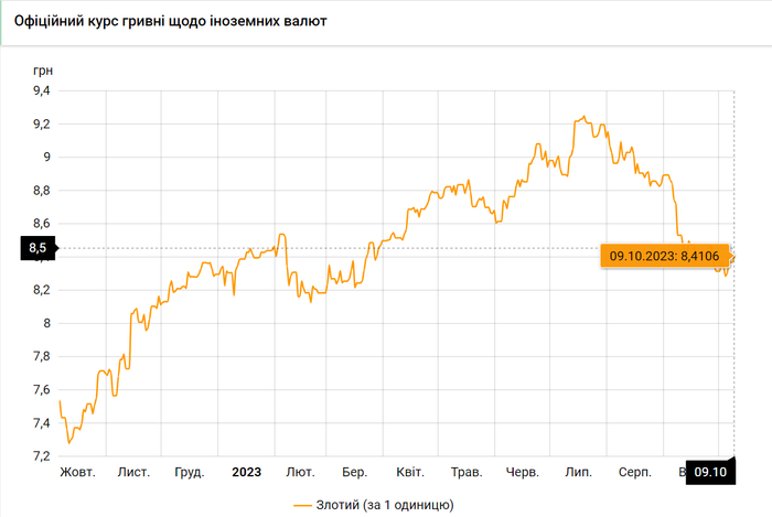 Национальный банк Украины обновил курсы валют на 9 октября 2023 года.