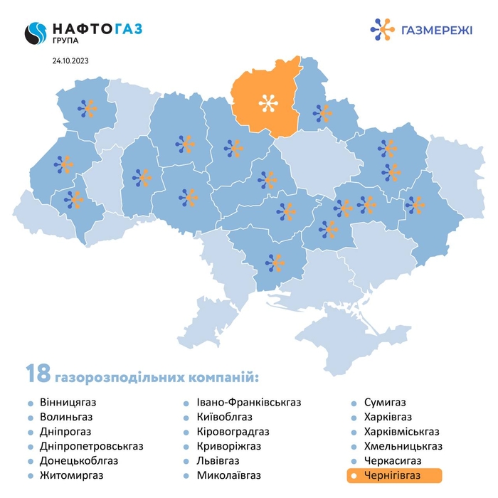 В "Нафтогазе" рассказали, что "Черниговгаз" обеспечивает доставку газа для почти 360 000 домов. Кроме того, регулирует распределение голубого топлива в бюджетные и религиозные организации, промышленные объекты, а также 12 теплокоммунэнерго региона.