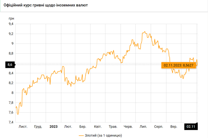 Национальный банк Украины обновил курсы валют на 2 ноября 2023 года.