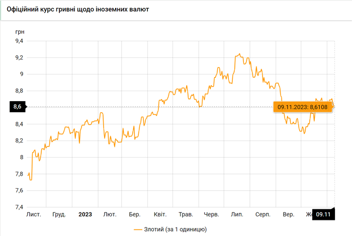 - 100 польских злотых – 861 грн. (8,61 за злотый, -1 коп.)