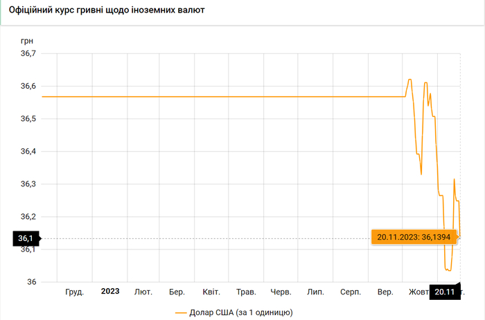 Национальный банк Украины обновил курсы валют на 20 ноября 2023 года.
