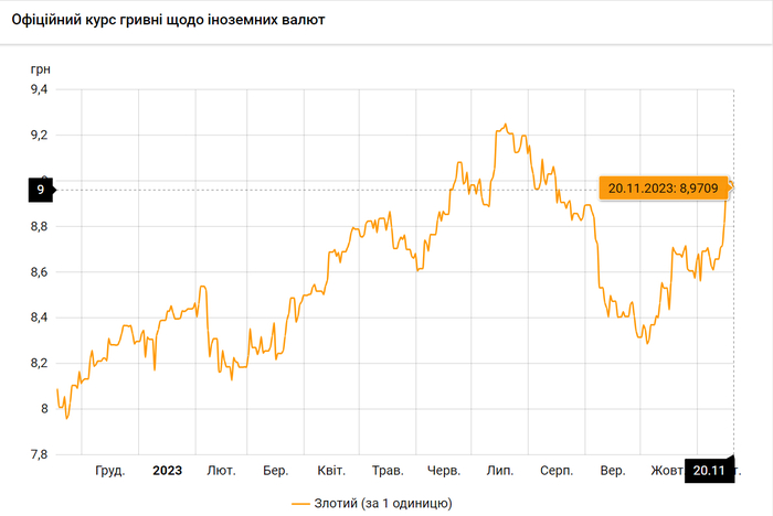 - 100 польских злотых – 897 грн. (8,97 за злотый, -2 коп.)