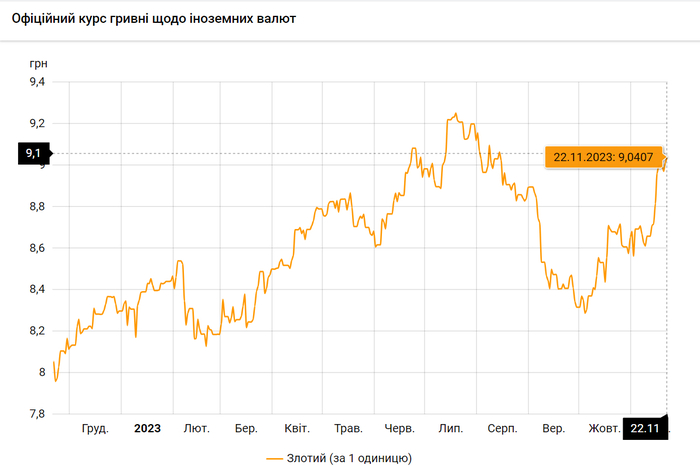 - 100 польских злотых – 904 грн. (9,04 за злотый, +3 коп.)