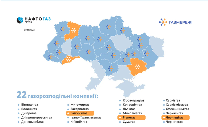 Общее количество газораспределительных компаний, интегрированных в Группу "Нафтогаз", увеличилось до 22-х.