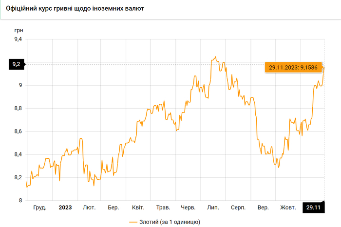 Национальный банк Украины обновил курсы валют на 29 ноября 2023 года.