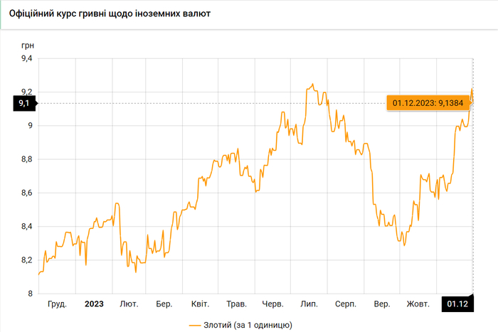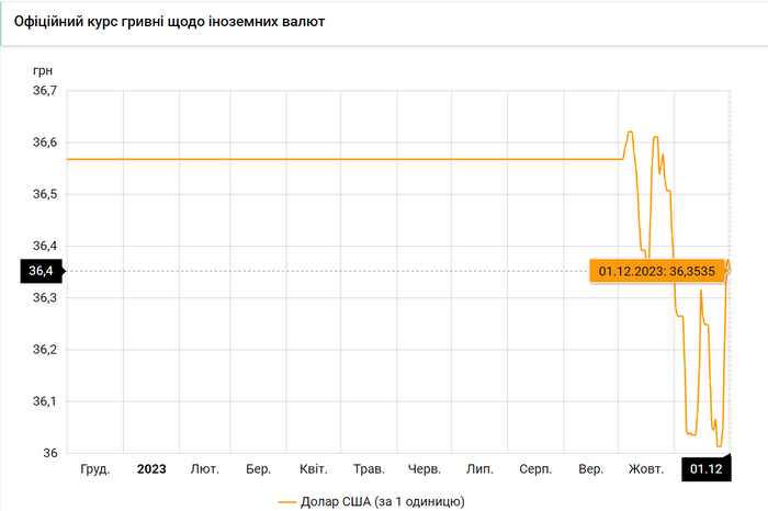 Национальный банк Украины обновил курсы валют на 1 декабря 2023 года.