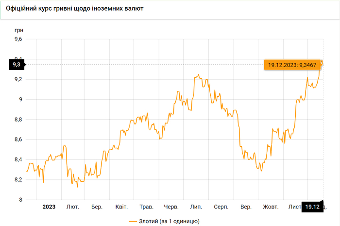 - 100 польских злотых – 934 грн. (9,34 за злотый, -5 коп.)