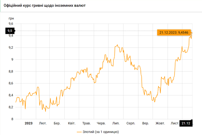 - 100 польских злотых – 945 грн. (9,45 за злотый, +2 коп.)