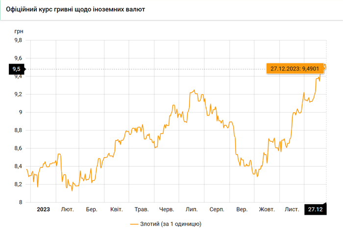 - 100 польских злотых – 949 грн. (9,49 за злотый, -4 коп.)