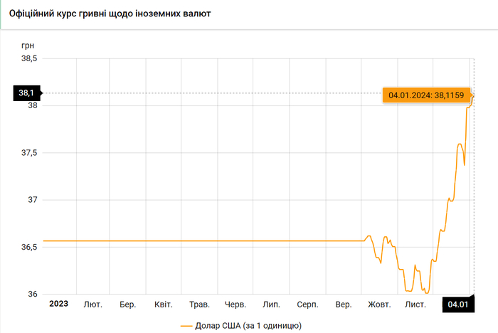 Национальный банк Украины обновил курсы валют на 4 января 2024 года.