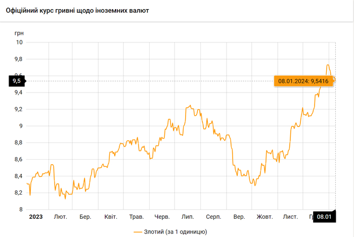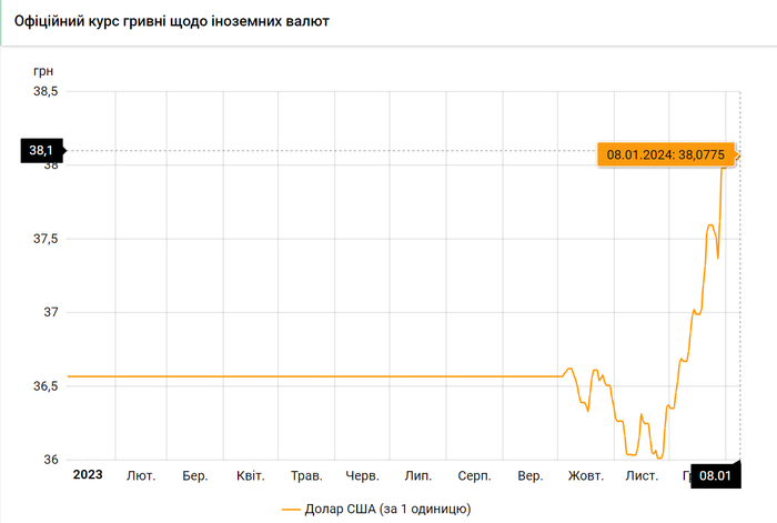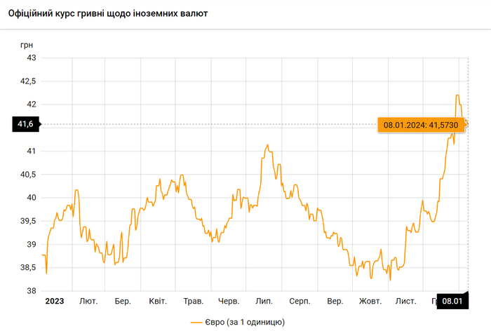 Национальный банк Украины обновил курсы валют на 8 января 2024 года.