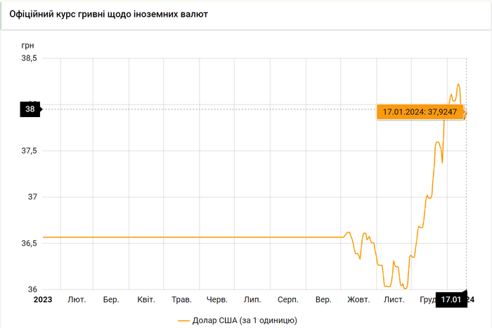Национальный банк Украины обновил курсы валют на 17 января 2024 года.