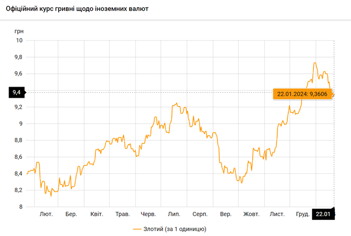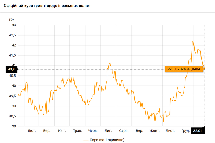 Национальный банк Украины обновил курсы валют на 22 января 2024 года.