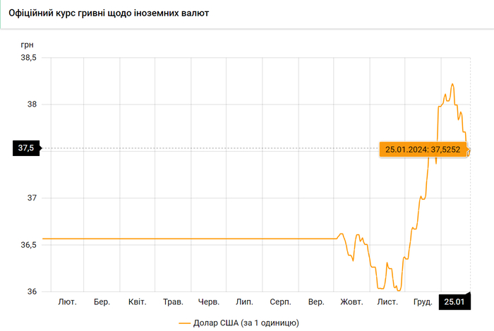 Национальный банк Украины обновил курсы валют на 25 января 2024 года.