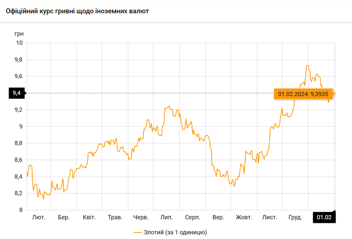 Национальный банк Украины обновил курсы валют на 1 февраля 2024 года.