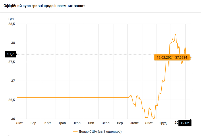 Национальный банк Украины обновил курсы валют на 12 февраля 2024 года.