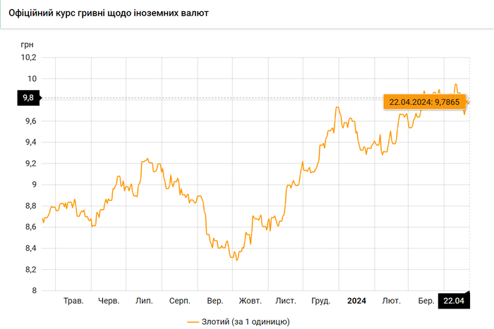 - 100 польских злотых – 978 грн. (9,78 за злотый, +2 коп.)