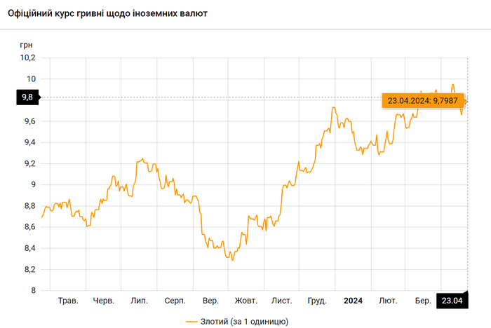 - 100 польских злотых – 979 грн. (9,79 за злотый, +1 коп.)