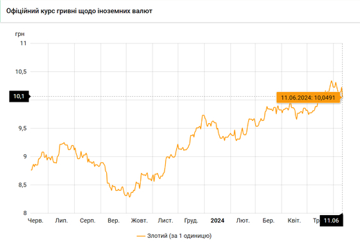 - 100 польских злотых – 1004 грн. (10,04 за злотый, -19 коп.)