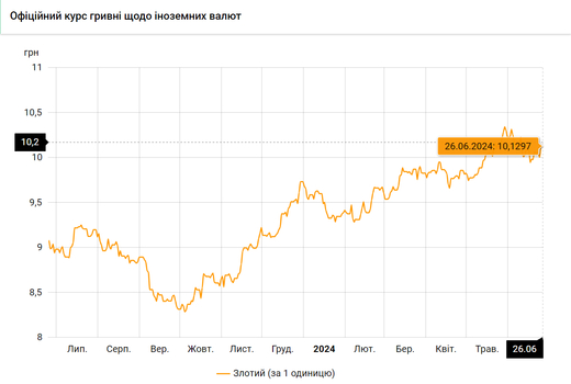 - 100 польских злотых – 1012 грн. (10,12 за злотый, +1 коп.)