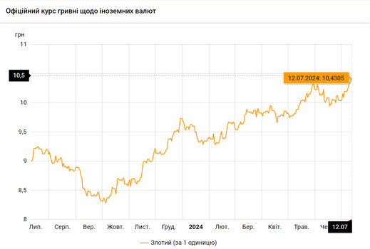 - 100 польских злотых – 1043 грн. (10,43 за злотый, +8 коп.)