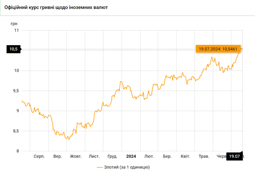 - 100 польских злотых – 1054 грн. (10,54 за злотый, -2 коп.)