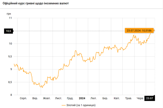 - 100 польских злотых – 1051 грн. (10,51 за злотый, -3 коп.)