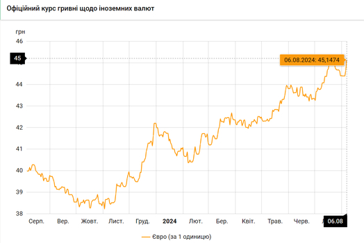 Курс валют на 6.08.2024: Евро растет
