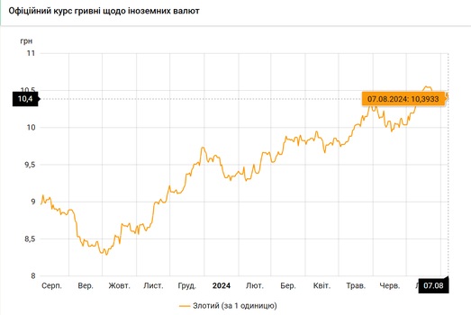 - 100 польских злотых – 1039 грн. (10,39 за злотый, -8 коп.)