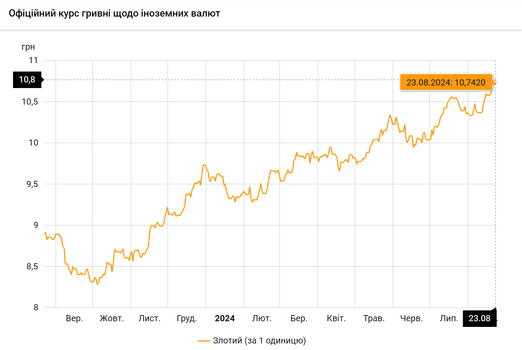 - 100 польских злотых – 1074 грн. (10,74 за злотый, +3 коп.)