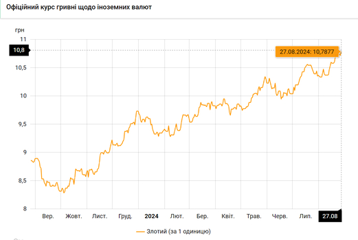 - 100 польских злотых – 1078 грн. (10,78 за злотый, +7 коп.)