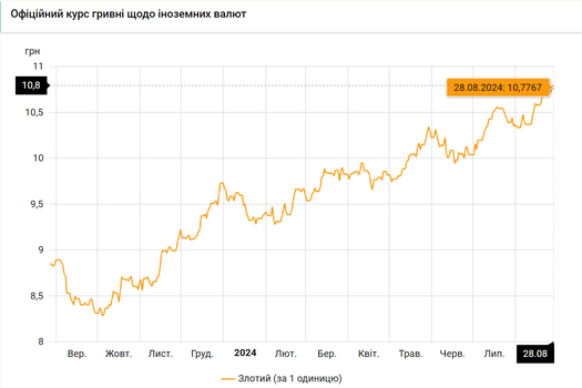 - 100 польских злотых – 1077 грн. (10,77 за злотый, -1 коп.)