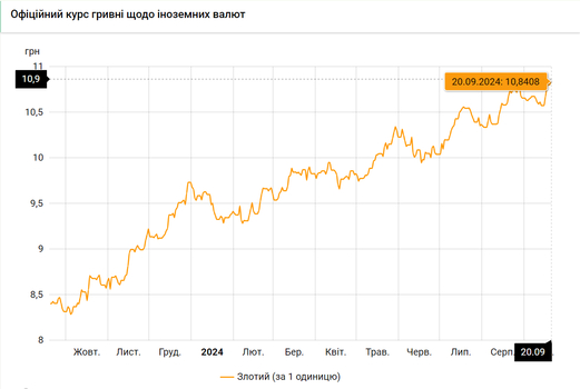 - 100 польских злотых – 1084 грн. (10,84 за злотый, +4 коп.)