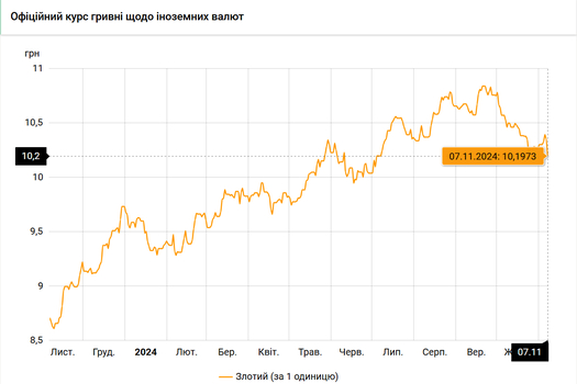 - 100 польских злотых – 1019 грн. (10,19 за злотый, -16 коп.)